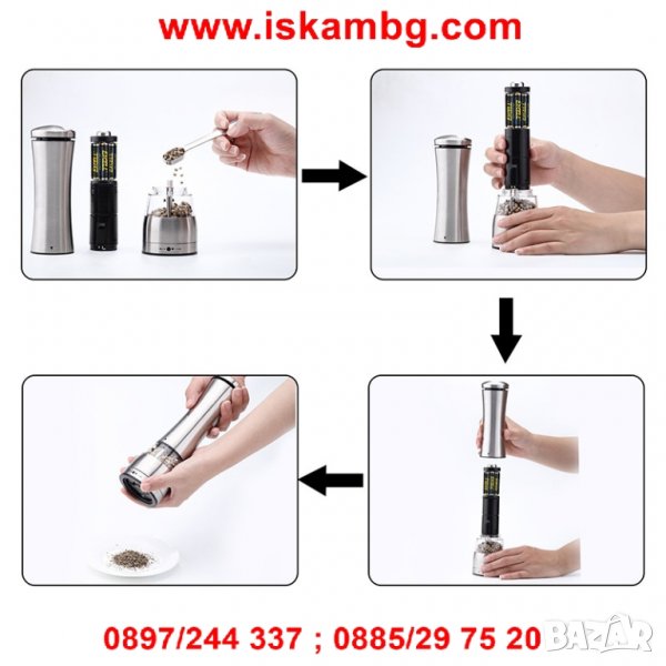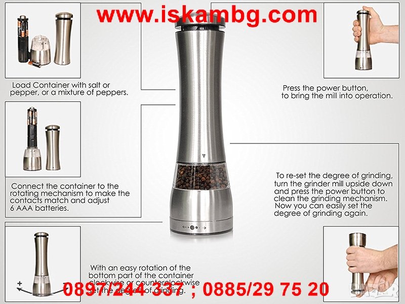 Работи с 4 батерии АА които не са включени в комплекта.