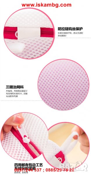 Торбата е направена от специален материал, който може да се използва и в сушилня. Мрежата се използва, за да се отдели по-финото пране и така да се предпази от закачане в ципове или други метални части и от скъсване.
