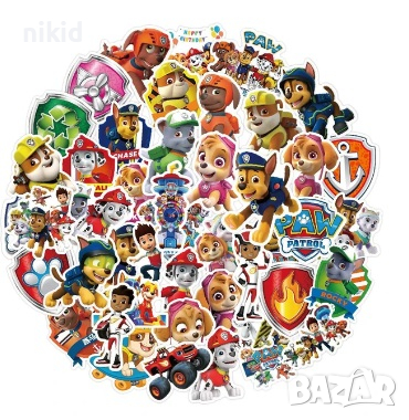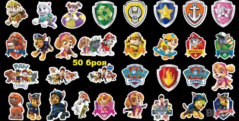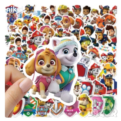 50 бр Пес Патрул Patrol самозалепващи лепенки стикери за украса декор картонена торта ръчна изработк → Обява 26925561