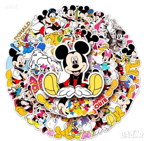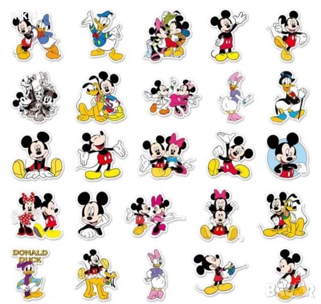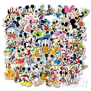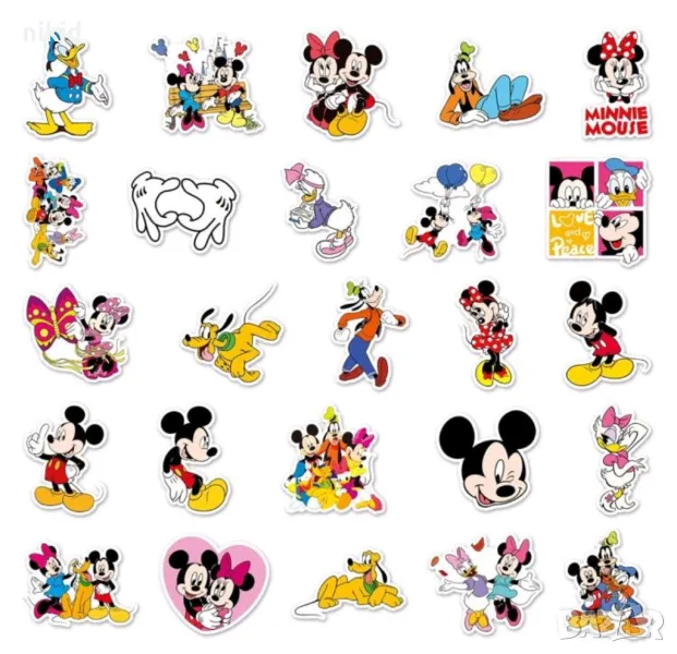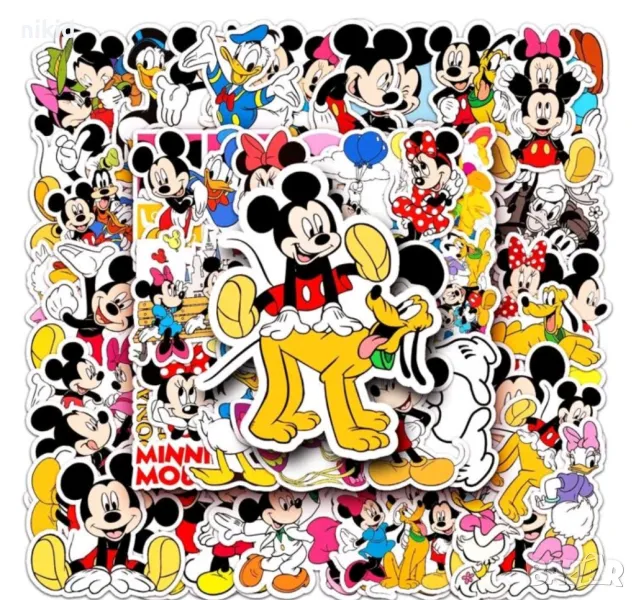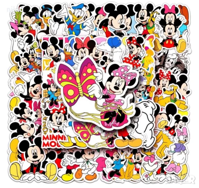 1вид 50 бр Мики и Мини Маус самозалепващи лепенки стикери за украса декор картонена торта и др парти → Обява 26925673