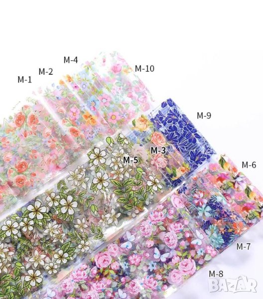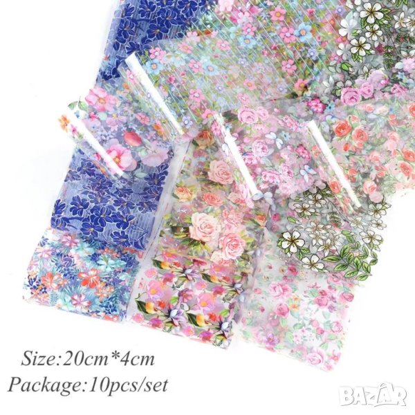 10 бр комплект фолио за нокти. Всички цветове от снимката , всеки цвят е с размер 20см *4см .