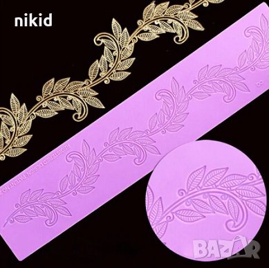 Дълъг клон с листа силиконов молд за сладка захарна дантела - за украса декорации на торта гъмпейст → Обява 26927348