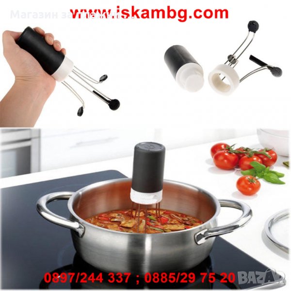 Превърнете готвенето от задължение в удоволствие с Stir Crazy! Stir Crazy ще разбърква всяко ястие, вместо Вас! А защо не сосове и различни застройки! Лесен за използване - натискате само един бутон. Подходящ за всякакви размери тенджери и тигани. Орбитално въртеливо движение - покрива всеки сантиметър от повърхността на съда. Работи автоматично, без да се налага намеса от ваша страна. Издържа до 300 градуса. Лесен за почистване. Може да се поставя в съдомиялни машини. Силиконови крачета, които предотвратяват надраскването на тенджерите и тиганите. 3 скорости на работа.