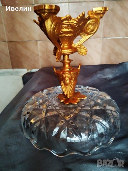 барокова фруктиера,купа.метален корпус,кристална купа.висока е 23см,диаметър 22см.