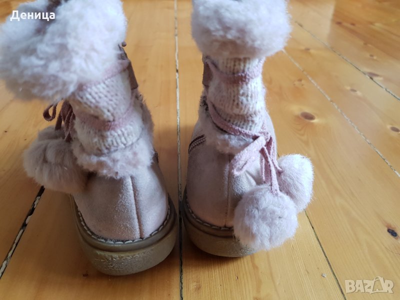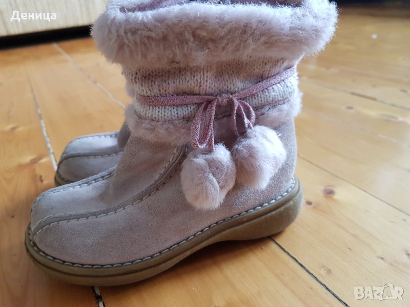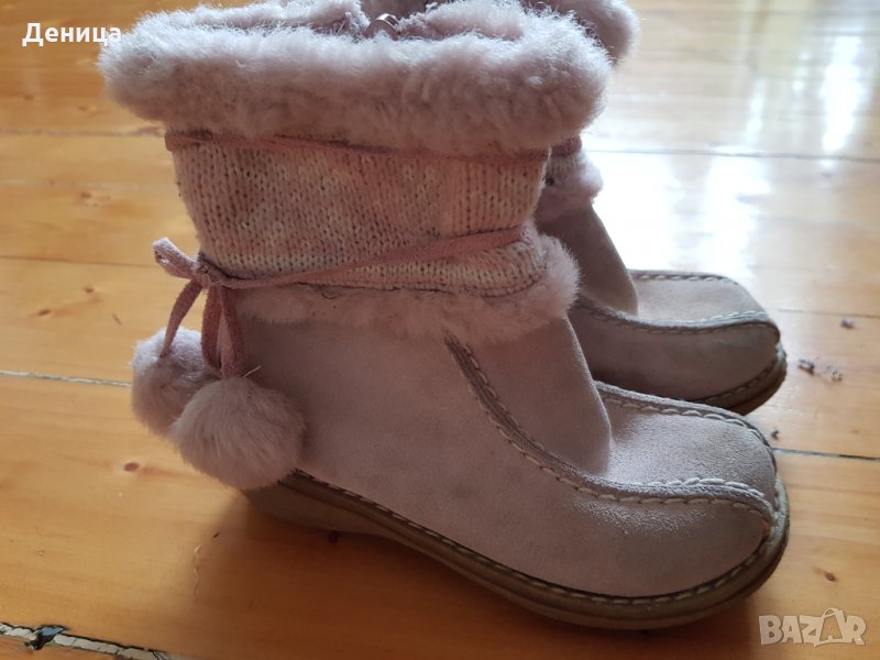 Напълно запазени детски ботушки, отвътре са с мека подплата, много топли и удобни. Отгоре е вълна и вълнено плетиво, отпред естествен велур. Обувани са 1 зима, изпрани и дезинфекцирани.