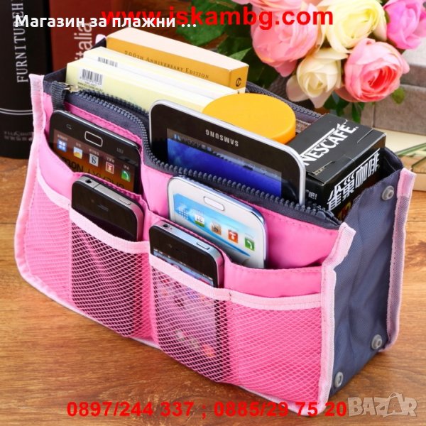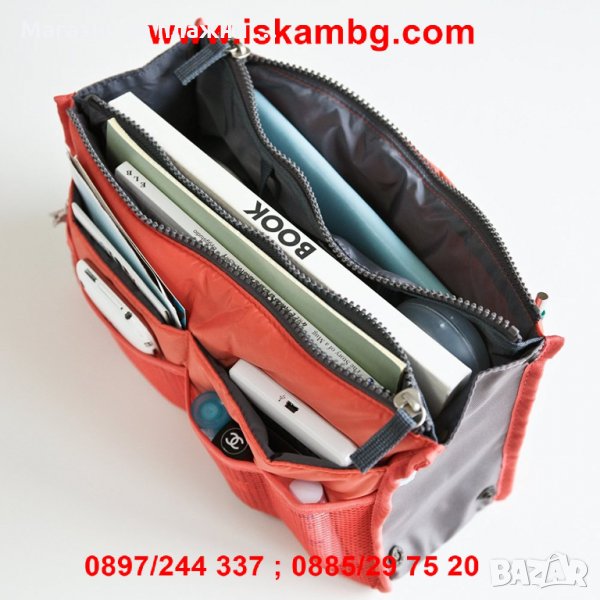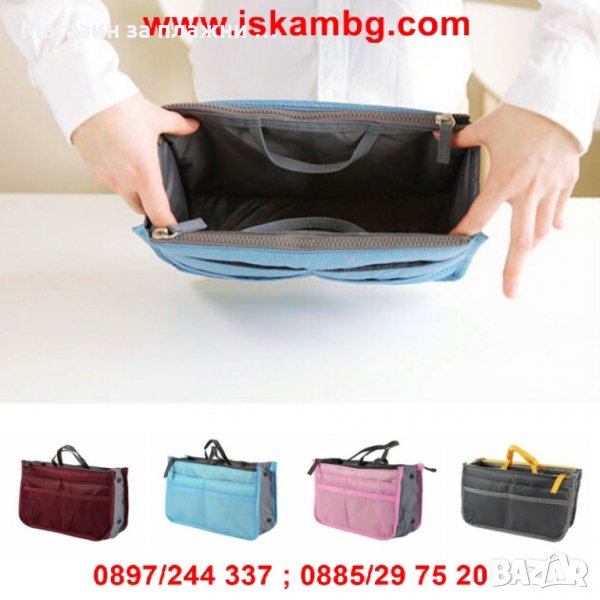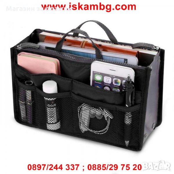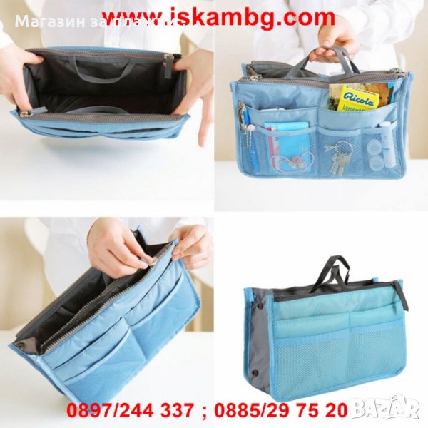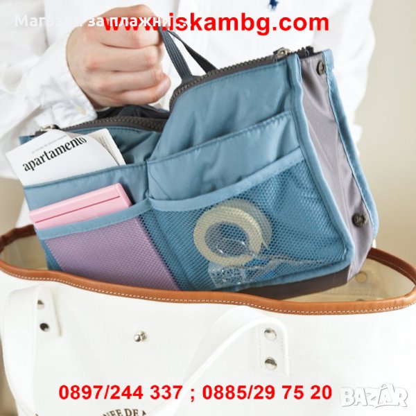 Но това не е всичко! Сега можете лесно да сменяте чанти, без да се налага да премествате едно по едно всяко нещо - просто вземете органайзера от едната и го поставете в другата чанта.