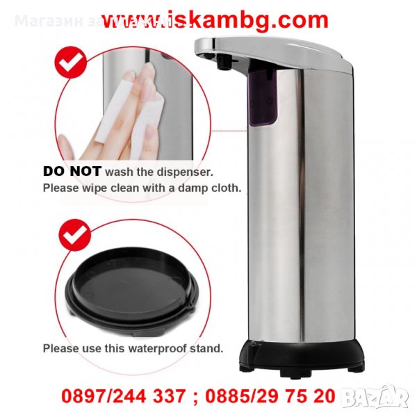 Ползването на диспенсър за сапун решава редица проблеми бързо изхабяване, оставяне на сапунена утайка, замърсяване на самия сапун и още много други. Просто наливате желания препарат и сте готови. Моделът, който ви представяме работи на батерии, а с помощта на сензор отпуска нужното количество. Край на капките и сапунената утайка. Не е нужно да го докосвате и да се цапате, поставяте ръка под отвора и диспенсърът пуска нужната доза.
