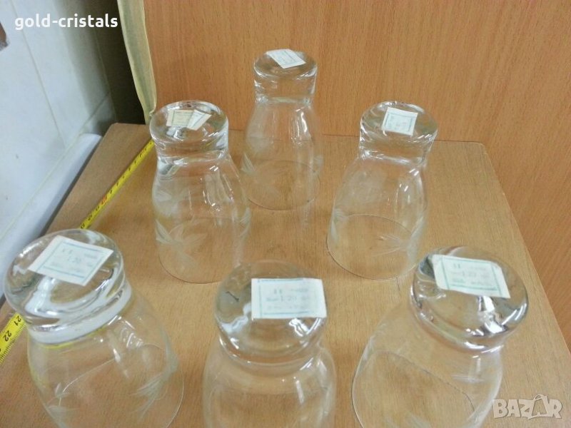 Стари стъклени чаши гравирани нови с етикети 72г 6бр-45лв сервиз комплект сет лот кристално калиево стъкло стари старинни ретро арт декор винтидж колекция стари антикварни предмети обзавеждане за дома и семейството подходящи за подарък за ценители и колекционери
