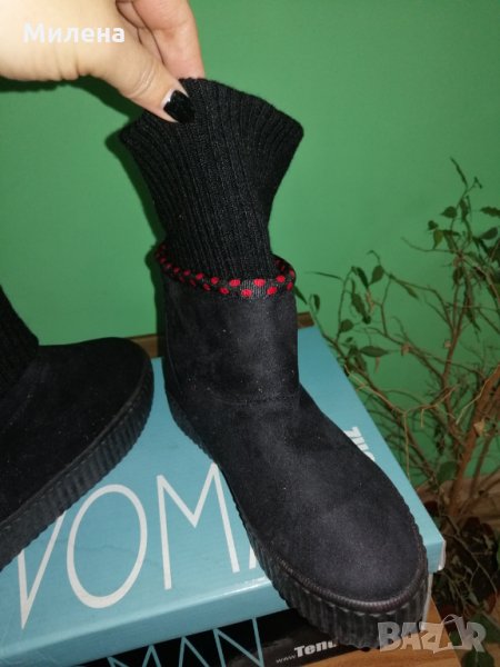 Нови ботички, тип чорап в глезена, с топла подплата и стабилна подметка. В кутия и с етикет.
