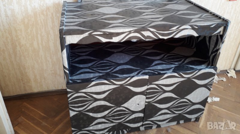Продавам шкаф тоалетка скрин с 1 открит горен рафт и 1 затворен долен с 2 вратички. Облепен е с фолио, цвят черно и сребристо, който може и да се отлепи и да остане оригиналния кафяв цвят на шкафа. Размери на шкафа дължина 82 см отпред, височина 80 см и дълбочина 54 см. Намира се в София, ж.к. Красна поляна 3. Отговарям на съобщения тук или т. 0887780808.