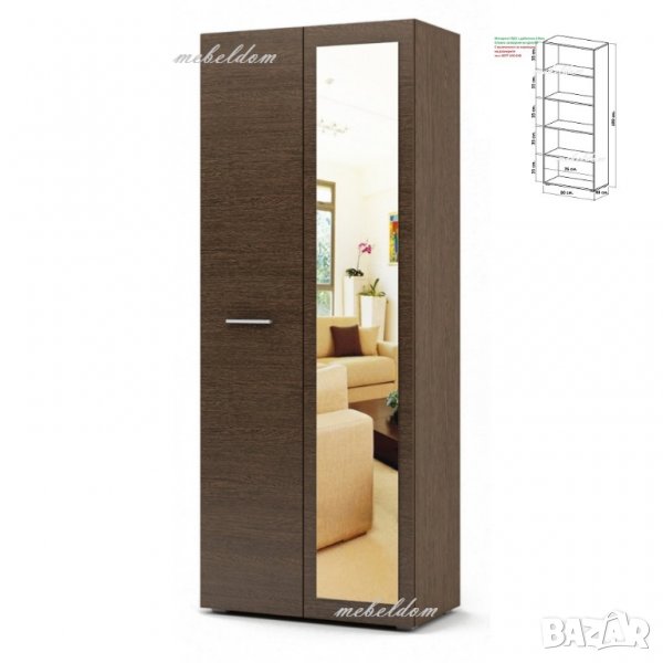 Гардероб двукрилен с 4 рафта и огледало(код-4563)