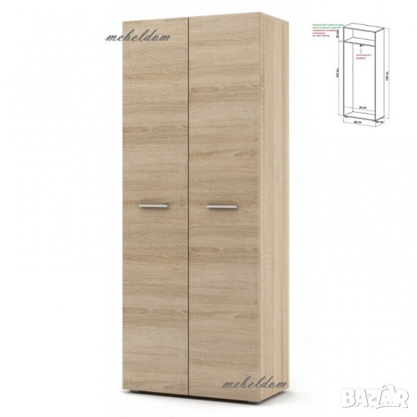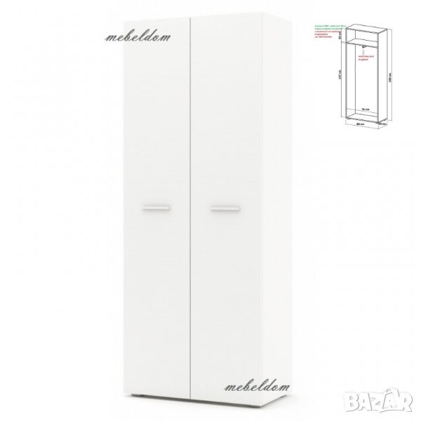Гардероб двукрилен с рафт и изтеглящ лост(код-4507)