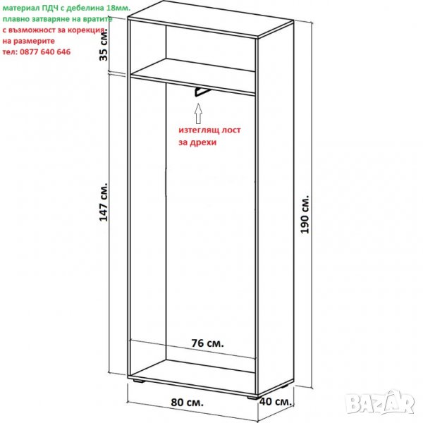 размери: 80 / 40 / височина 190см. (виж схемата)