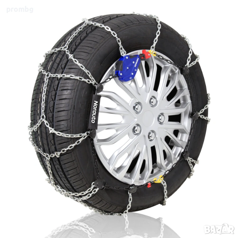 Оригинални снежни вериги Norauto-Франция за леки автомобили, с автоматична система за обтягане. Веригите се самонастройват по време на движение, без нужда от повторно спиране и ръчно регулиране. Подходящи за сигурно шофиране при сняг, лед и заледени пътища. Налични два модела: Norauto 55 и Norauto 60. Посочената цена е за 1 комплект вериги. Само за леки автомобили (не са за SUV, джипове или бусове).