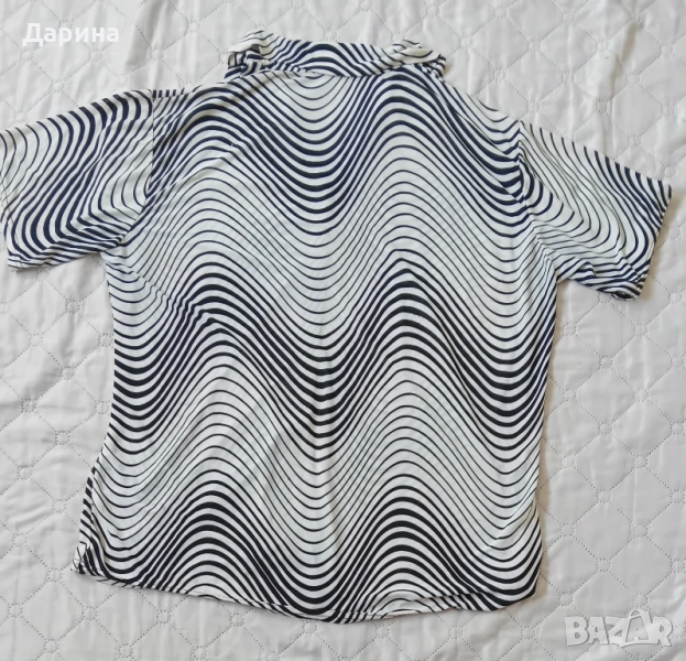Дамска риза . Дължина : 74 см , Отделно яка : 10 см , Ширина от рамо до рамо - едностранно : 52 см , Ширина от мишница до мишница - едностранно : 62 см , Ширина в кръста - едностранно : 70 см , дължина на ръкав : 24 см . Изпращам с Еконт за сметка на купувача .