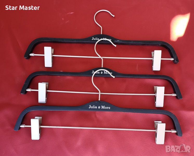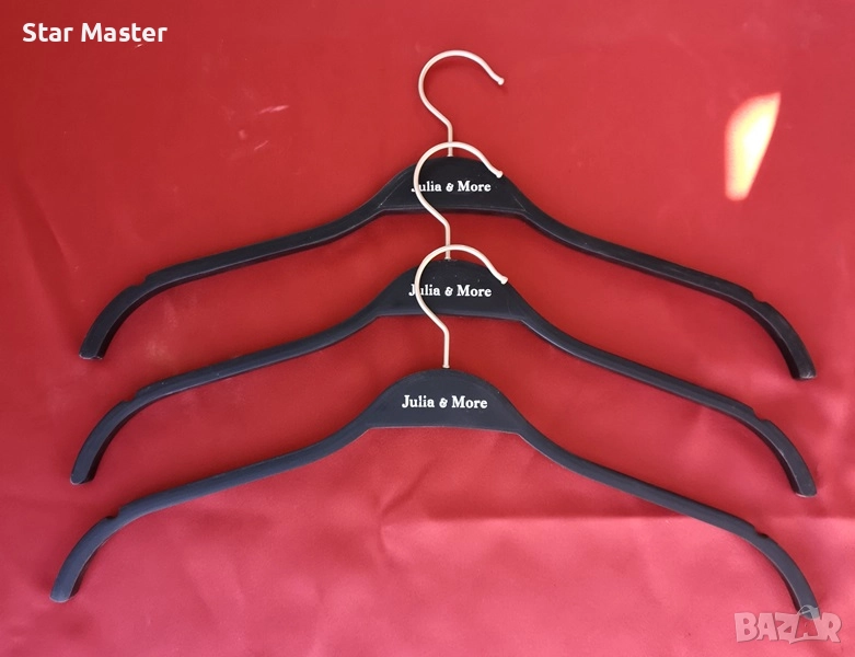Продаваме висококачествени, дървени и гумирани закачалки за дрехи с метална кука. За мъжки и дамски дрехи. Цената в обявата е за един брой закачалка за горна дреха! Закачалките за долна дреха с щипки и комбинираните / с преграда/ са по 0.60€ за брой. Когато питате за определен модел, уточнявайте на коя по ред снимка се намират закачалките в обявата, като броите и основната. Разполагаме и с детски модели закачалки, както и такива с широко рамо за сако/яке на отделни обяви в профила. Пращаме и по куриер с отстъпка от куриерската услуга. Тел.:0988304113