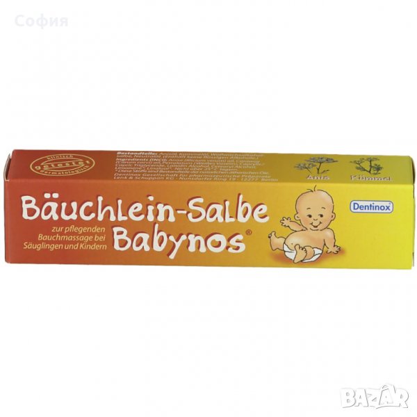 БЕЙБИНОС 50мл. / BABYNOS 50ml. е специално мехлемче за масаж, което се нанася лесно и чисто върху коремчето и допринася за успокояване на колики при кърмачета и малки деца. Бързо се разтопява върху кожата и по този начин се превръща в приятно ухаещо масажно масло. Доставено от Германия с дълъг срок на годност.