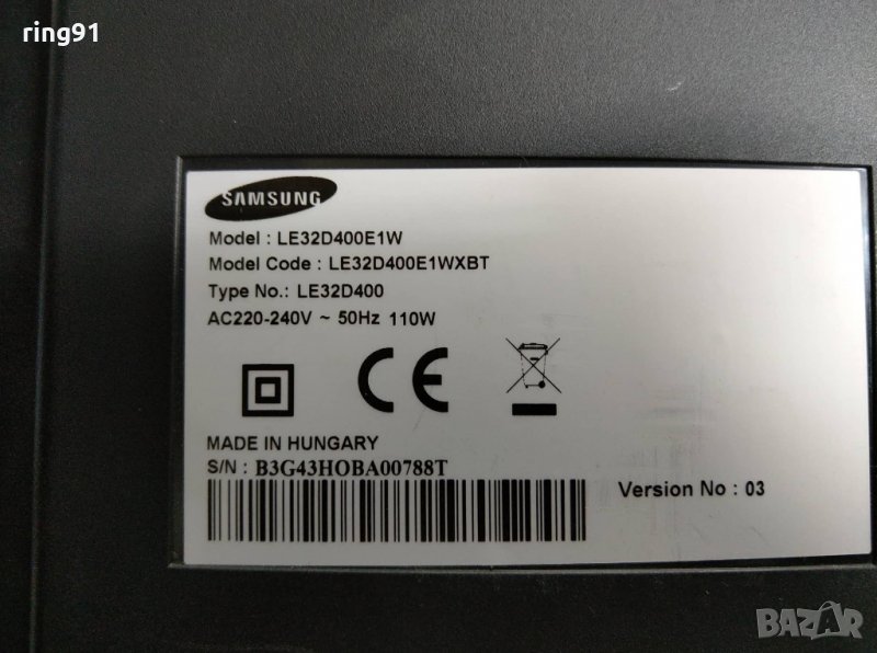 TV Samsung LE32D400E1WXBT, снимка 1 - Части и Платки - 26955849 TV Samsung LE32D400E1WXBT, снимка 2 - Части и Платки - 26955849 1/2