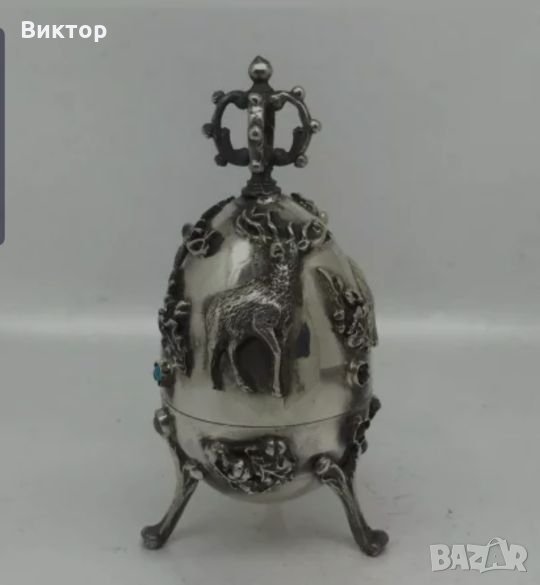 Антично Императорско Руско Сребърно Яйце 1878 година ловна тема елен.Окончателна цена. → Обява 26959474