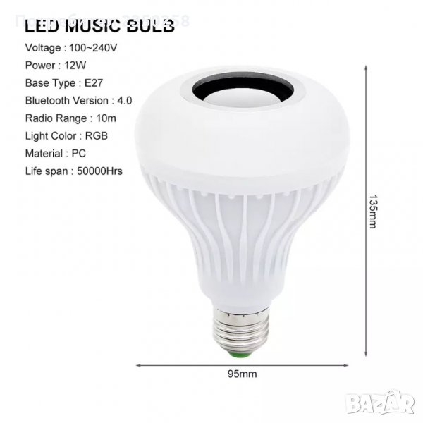 СУПЕР ХИТ Bluetooth колона LED RGB диско лампа крушка музика