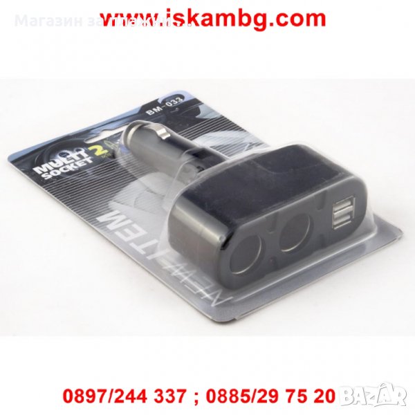 Двоен сплитер за запалка с 2бр. USB - 033