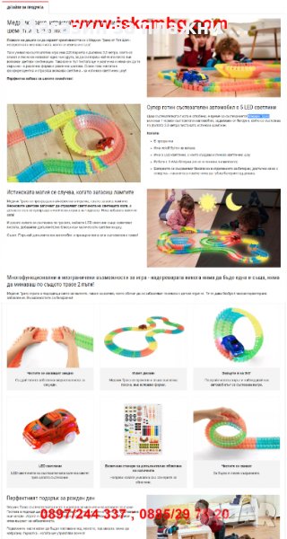 Представяме ти уникалната комбинация от гъвкава, светеща в тъмното писта и супер бърза, светеща LED-количка, с която твоето дете незабавно ще се пренесе в света на "Бързи и яростни".