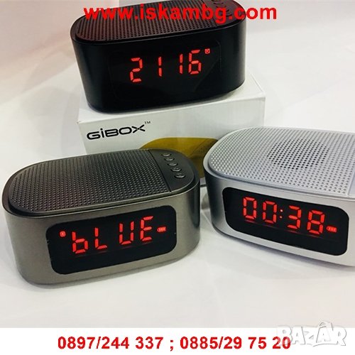 Радиочасовник Gibox GT-1 настолен часовник с радио и Bluetooth, който винаги ще ви събуди в точното време, под звуците на любимата вирадиостанция или чрез определен сигнал. LCD-дисплей в червен цвят.Перфектен подарък за близки и приятели. Вход за слушане на музика от SD карта и Флашк. Блутут функция за безжично слушане на музика.