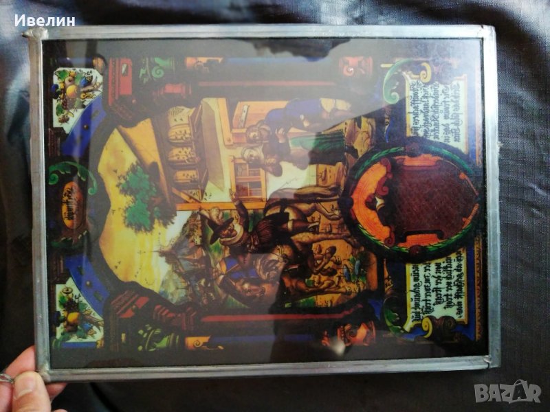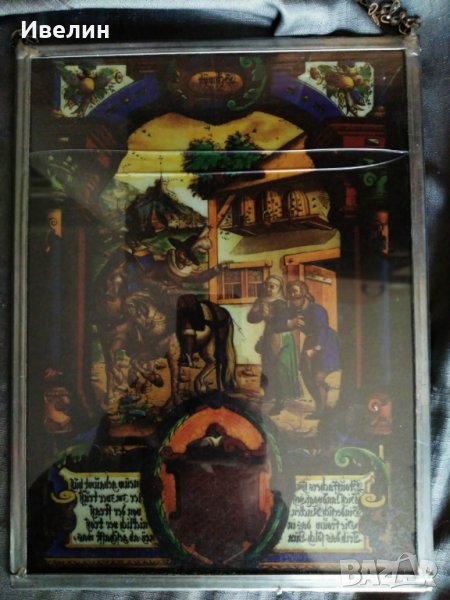 декорации за стена във викториански стил на две стъкла/предполагам щампа/.в метален обков/предплагам калаено цинкова сплав с размери 32см/28см.забележка-едното стъкло е пукнато.