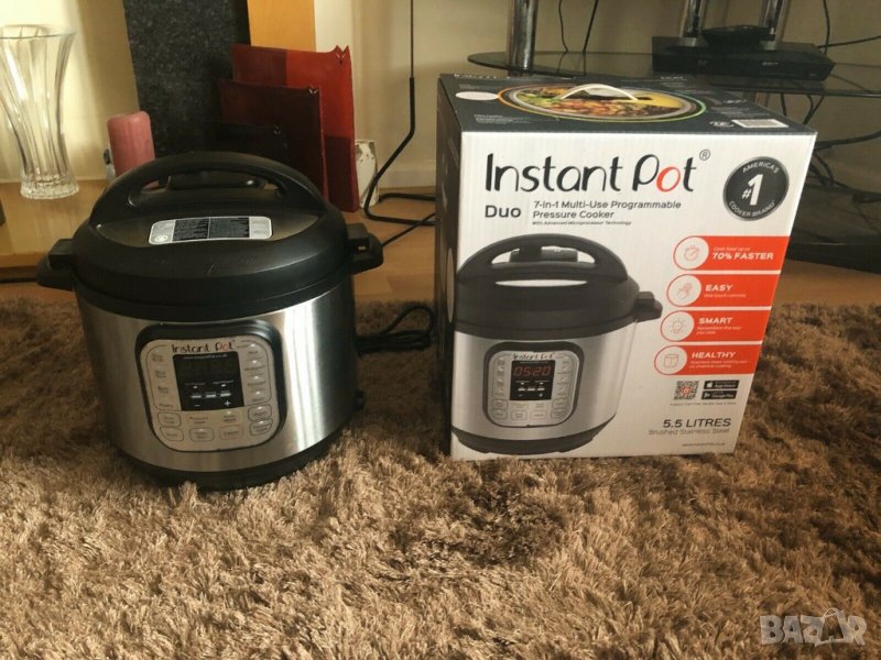 2. Instant Pot Duo: 8 л. - Instant Pot Duo V2 - това е 7 уреда в 1. Electric Pressure Cooker, 8L 1200 W, Brushed Stainless Steel/Black, 220-240v, Stainless Steel Inner Pot. Цена: 299 лв. - ПРОДАДЕНА