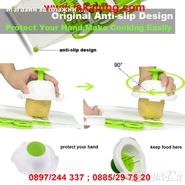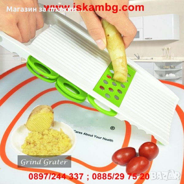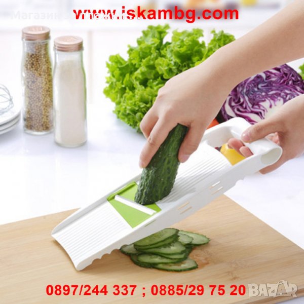 Ренде/резачка за рязане и стъргане на плодове,зеленчуци,месо,сирене,кашкавал и други храни с пет приставки.