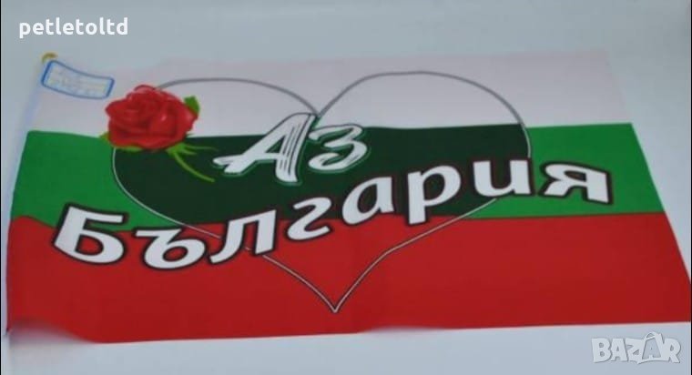 Национален флаг на Република България, без дръжка с образа и стихотворение на Христо Ботев и Лого АЗ ОБИЧАМ БЪЛГАРИЯ
