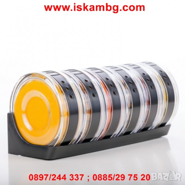 Предлагаме Ви едно наистина дизайнерско решение за Вашата кухня - стилен рафт за подправки със 6 броя цилиндрични контейнера за подправки. Ние се влюбихме в него, затова ви го препоръчваме силно!