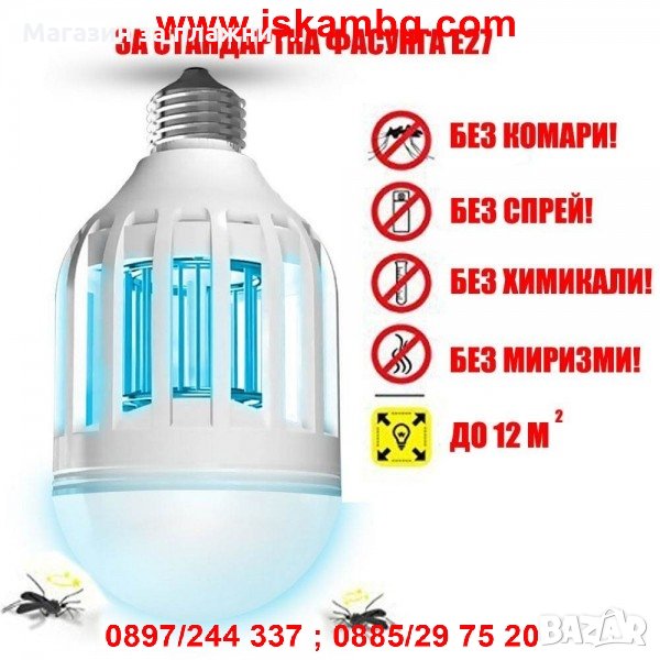Тази енергоспестяваща крушка ще направи бърз процес с досадните насекоми. Можете да я използвате както на закрито, така и на открито.