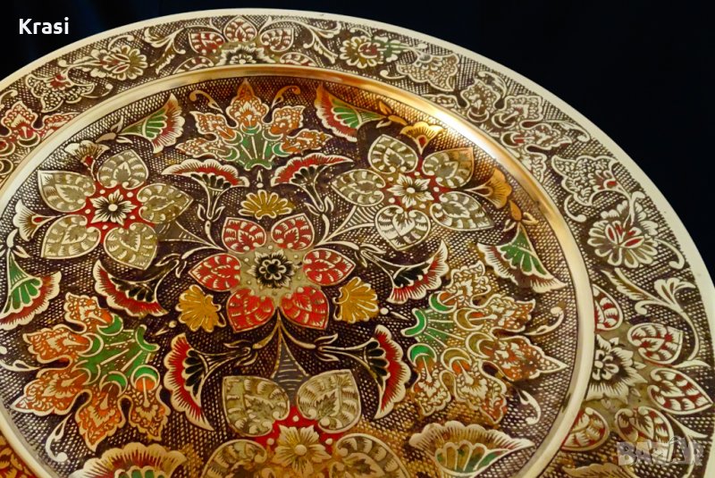 Бронзов поднос,плато цветен клетъчен емайл. → Обява 26984541