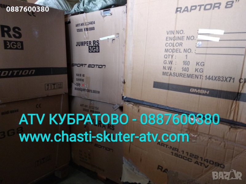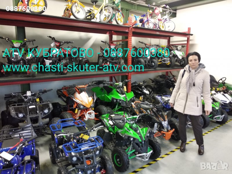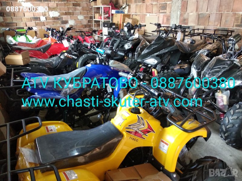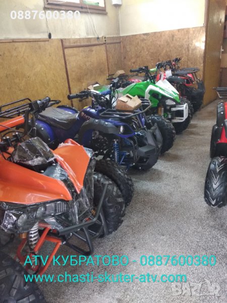 Имаме НАЛИЧНИ НАД 70 модела ФАБРИЧНО НОВИ, богат избор и всички кубатури за малки и големи: 50сс, 110сс, 125сс, 150сс, 200сс, 250сс, 300сс, 350сс. Пишете АТВ КУБРАТОВО в Google или въведете нашия тел. номер през търсачката и ще стигнете до законен електронен магазин с ясни обявени контакти CHASTI-SKUTER-ATV.COM, където всеки модел е въведен по отделно с цена и технически данни. ПОДАРЪЦИ И ОТСТЪПКИ при всяко закупено АТВ! ГАРАНЦИОНЕН и ИЗВЪН ГАРАНЦИОНЕН СЕРВИЗ, ФАКТУРА с ДДС, СЕРТИФИКАТ за КАЧЕСТВО и ПРОИЗХОД! ПРАЩАМЕ ПО ЕКОНТ с БЕЗПЛАТНА ДОСТАВКА!