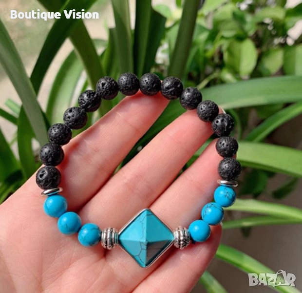 Гривна от тюркоазени мъниста, абсорбира цялата негативност от тялото и ума и