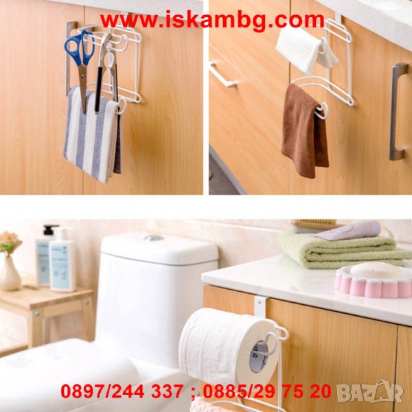 Тя е особено подходяща за съхраненеие и подереждане на тоалетна хартия, кухненска хартия, домакински ръкавици и други. Можете да закачите поставката на тоалетното казанче или на вратата на шкафчето в банята!