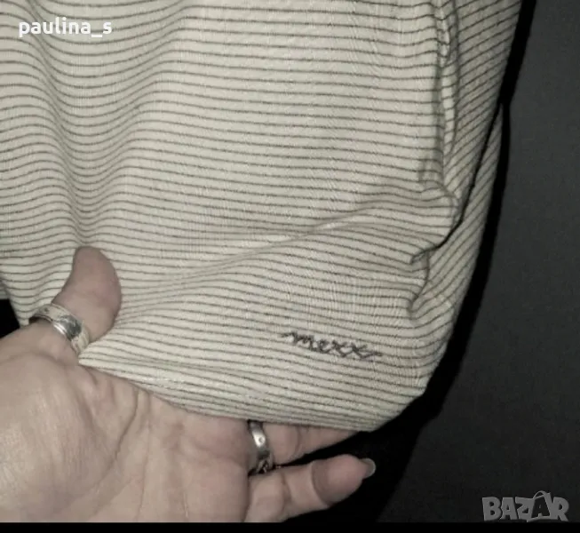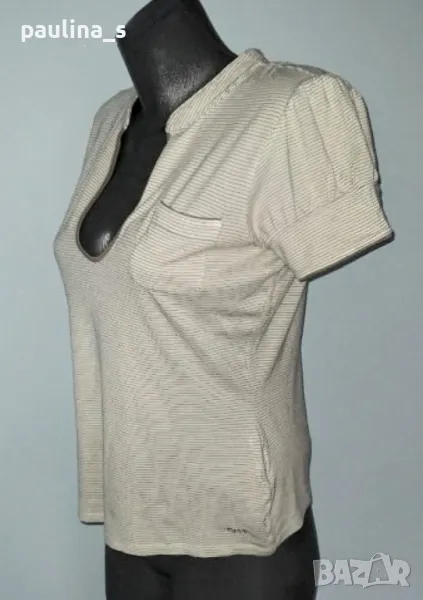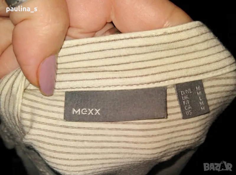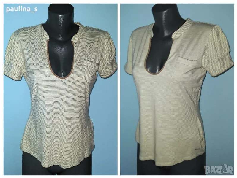 2. Колаж / M / 3XL - Кокетна еластична блуза "Mexx" с буфон ръкави. Цената е крайна 19,99лв. Кокетна блуза от еластично памучно трико с ликра - хипоалергична материя. Моделът е подчертано предизвикателен с дълбоко деколте, джоб и буфон ръкави. Материята е еластична и покрива няколко номера. Без дефекти.