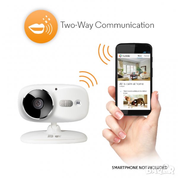 - Достъп с таблета или смартфона си на камерата на живо и настройките чрез приложението "Хъбъл" за Motorola с iOS (7.0 или по-нова версия) или Android (4.4 или по-нова версия).