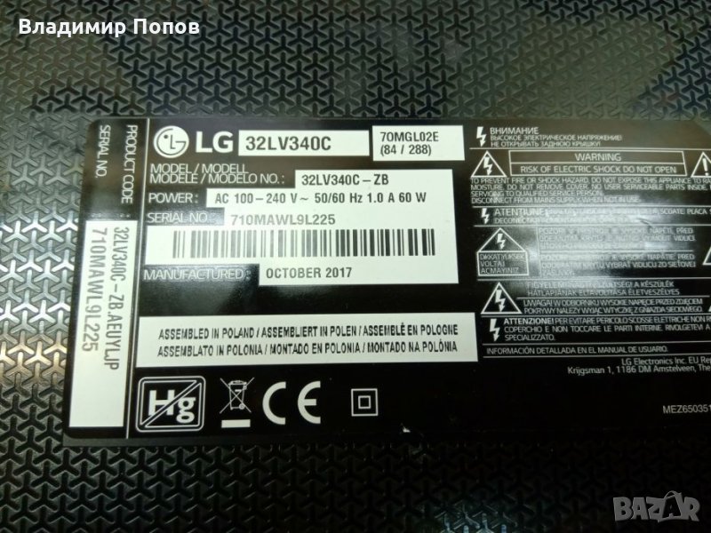 Продавам на части телевизор LG 32LV340C → Обява 27000979