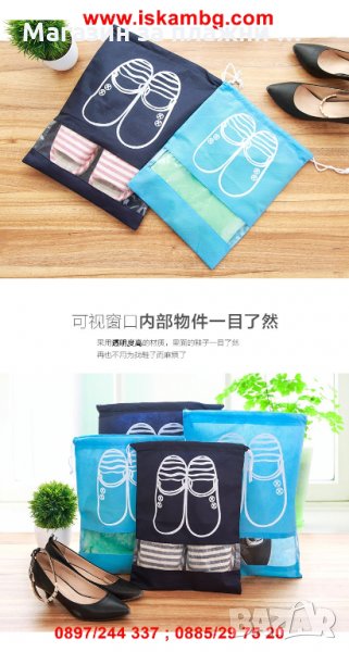 Този аксесоар е подходящ при пътуване, за да изолира обувките от останалите дрехи. Използва се изключително лесно и е подходящ за многократна употреба.