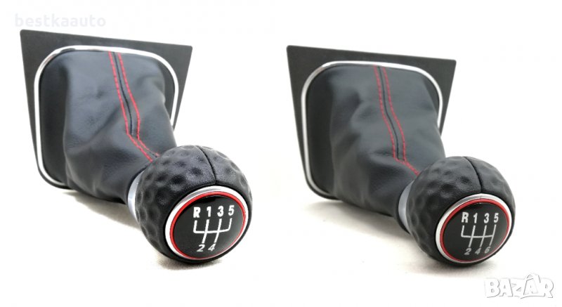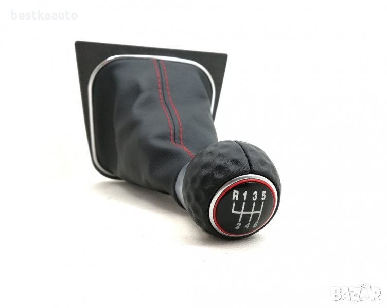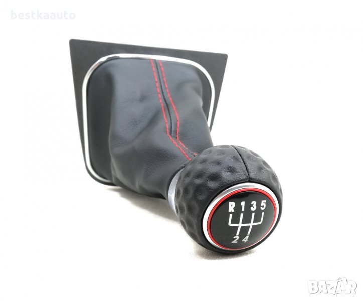 Топка скоростен лост с маншон червен шев VW Golf MK5,MK6, Jetta, EOS 5 и 6 скорости