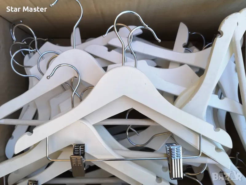 Качествени дървени закачалки, с метална кука, за детски дрехи. Подходящи за домашно ползване, магазини за дрехи и др. Цената в обявата /0.25€/ се отнася за моделите без метални щипки за горна дрешка. Всички модели закачалки, които са с метални щипки са по 0.35€.
