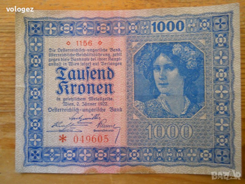4. 1000 крони 1922 г. - Австрия - 7,67 € / 15 лв
