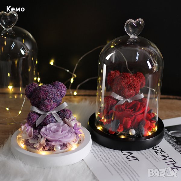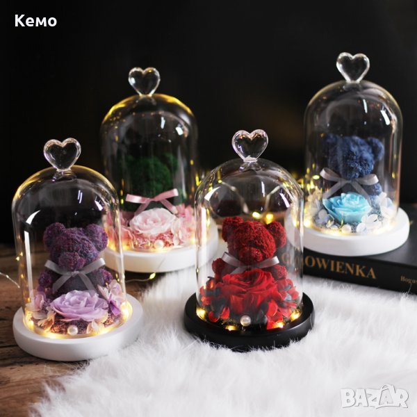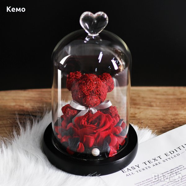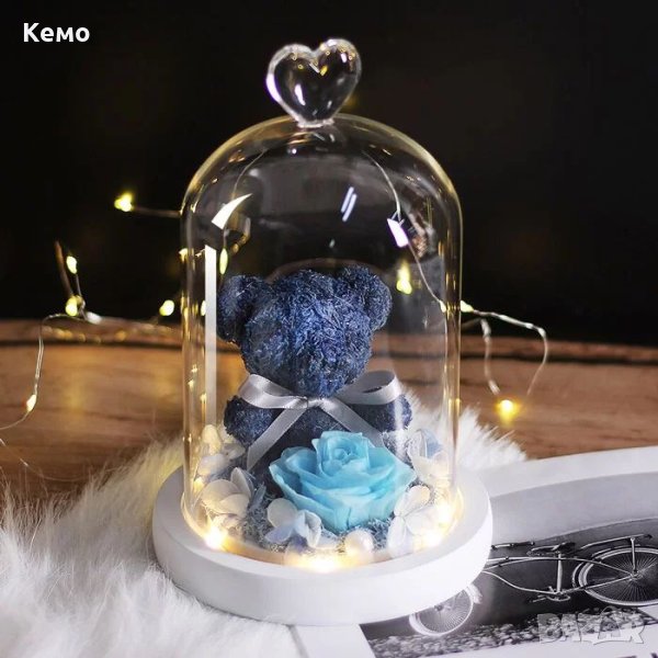 Меченце с вечна роза в стъкленица