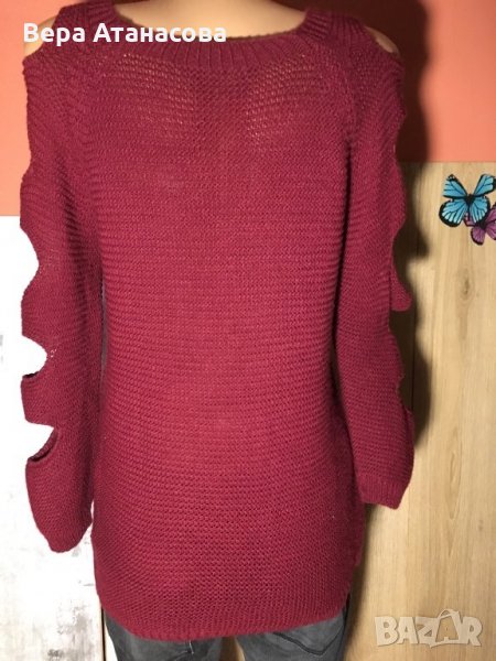 💄Плетена туника с рязани ръкави в цвят бордо,м,л размер, снимка 1 - Блузи с дълъг ръкав и пуловери - 27024513 💄Плетена туника с рязани ръкави в цвят бордо,м,л размер, снимка 2 - Блузи с дълъг ръкав и пуловери - 27024513 1/2