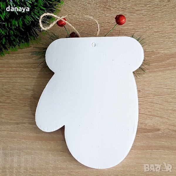 Декоративна коледна ръкавичка с брокатено покритие и мини шишарки с панделка и изкуствени елхови клонки. Изработена от картон, с връвка за закачане на стена или врата. Красива коледна украса.