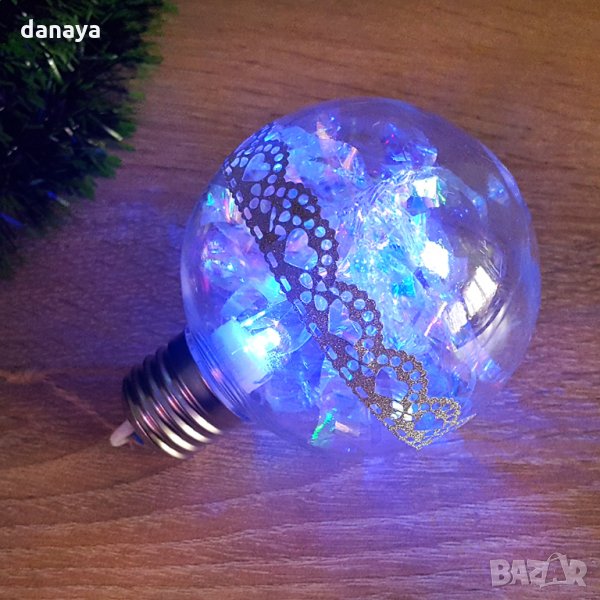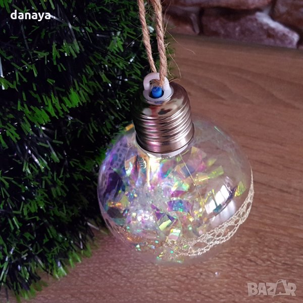1260 Светеща коледна топка с pvc дантела за украса на елха 8см диаметър
