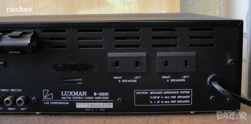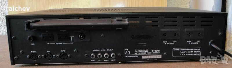 LUXMAN R5001 – Колекционерски красавец. Мощен - 2Х45вата/8 ома. Работи с колони от 4 – 16 ома. Изходи за два чифта колони. Чувствителен тунер с 5 мемори. Атрактивна и ярка индикация.
