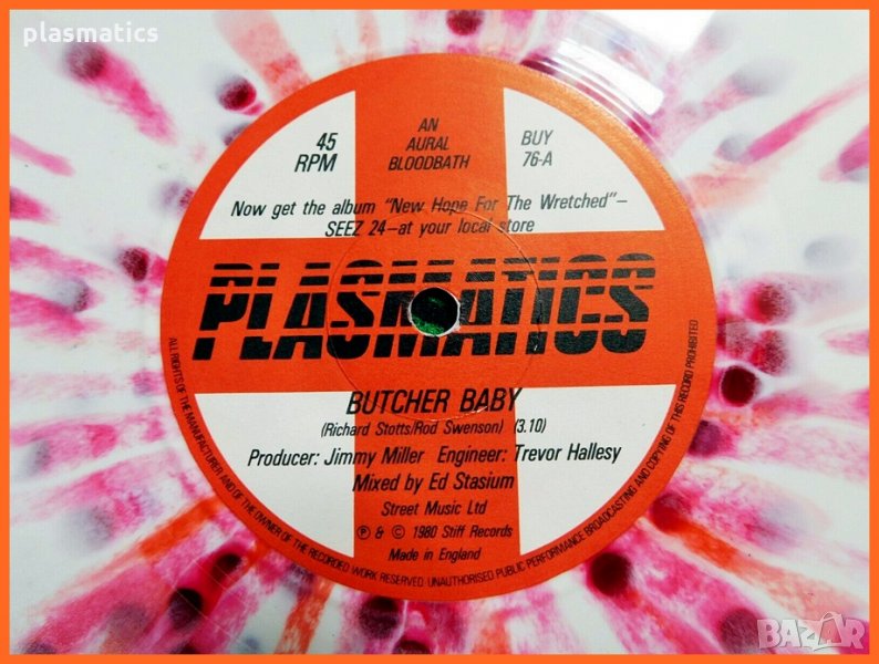 PLASMATICS - Butcher Baby 7" single - Stiff Records 1980 (coloured vinyl) Limited Edition - Punk shock. Made in England.